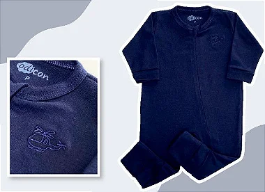Maravilhoso, macacão manga longa em malha suedine 100% algodão, macio e delicado para a pele do bebê! Possui gola redonda, fechamento em zíper na frente com proteção na gola. Pode ser usado com pezinhos fechados ou com os pezinhos do bebê para fora, fácil de mudar, apenas virar a dobra no pezinho. Muito prático e versátil. Na cor azul marinho com bordado delicado de helicóptero na frente. Lindo e prático para seu bebê ficar ainda mais fofo!